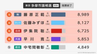 嫌儲 【多摩市議補選】無所属、生活者ネット、自民、共産の4人が当選。都ファ、参政、国民は落選