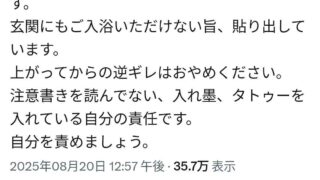「入れ墨のお客様は入浴できません」1万いいね。なんで日本人はタトゥーを異常に嫌うの?