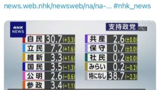 なんG れいわ新選組、支持率1%を割りガチでオワコン化へwww