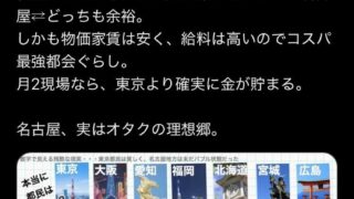 嫌儲 【画像】X「オタ活するなら東京より名古屋に住むのが最強」1000いいねwww