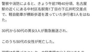 嫌儲 名古屋 71歳の男が横断歩道の2人を轢き殺し