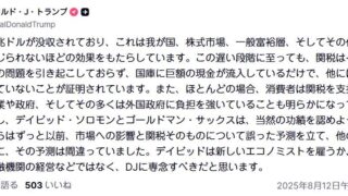 嫌儲 トランプ「関税負担は主に企業や外国政府が担い、米国消費者への影響はなし、GSの予測は間違い、新しいエコノミストを雇え
