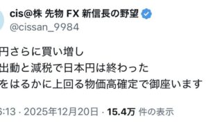 嫌儲 資産400億円投資家のcis氏「日本円は終わった。減税をはるかに上回る物価高確定で御座います」