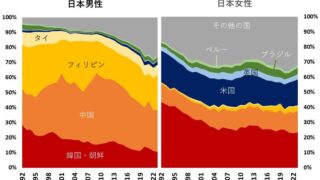 なんG 国際結婚で日本人はどこの国の人と結婚しているのか?