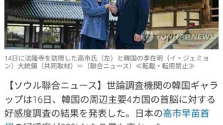 嫌儲 高市サナ、韓国人の周辺4カ国首脳好感度調査でぶっちぎり1位にwmwmwmwmwmwwmwmwm